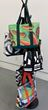 Each piece begins with hand-painted acrylic on canvas or recycled French linen, materials chosen not only for their beauty and durability, but also for their history and character. Abstract brushstrokes, layered textures, and vibrant color stories are painted directly onto fabric, turning raw material into a living work of art. From there, I translate each painted surface into a functional tote bag, thoughtfully crafted to honor the movement and spontaneity of the artwork. No two pieces are alike; each one is a wearable artifact of our shared process.